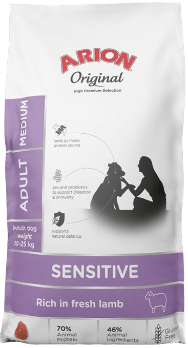 ARION Original Sensitive Adult Medium to pełnoporcjowa, sucha karma klasy premium, stworzona specjalnie z myślą o dorosłych psach średnich ras o wrażliwym układzie pokarmowym. Jej receptura opiera się na wyselekcjonowanych składnikach, które wspierają zdrowie, dobrą kondycję oraz codzienną energię Twojego pupila.